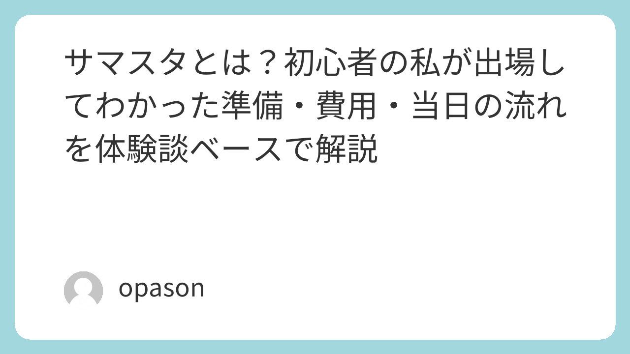 この記事では、サマスタが気になっていた頃の自分が知りたかったことを、実際に動いてみてわかった感覚ベースでまとめます。初心者でも出られるのか、どんな準備が必要か、費用はどれくらいかかったのか、そして当日はどんな空気なのか。体験を軸に、できるだけリアルに書いていきます。