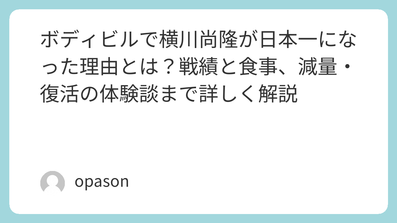 「ボディビル 横川」と検索する人が本当に知りたいこと