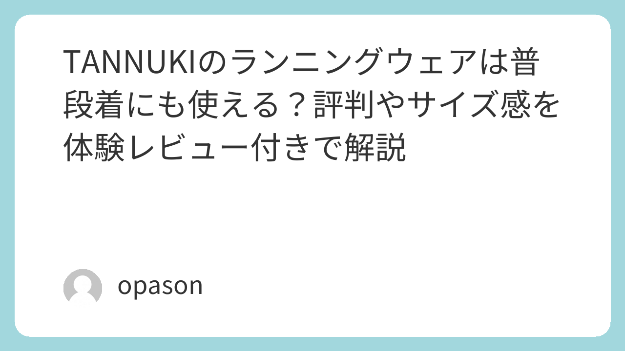 一方で、1グラムでも軽く、1秒でも速くというレース最優先の選び方をする人は、アイテムによっては他の競技特化ブランドのほうがしっくりくるかもしれません。TANNUKIは、数字のスペックだけで選ぶ服というより、「この服を着ると外に出たくなる」「走ることのハードルが下がる」と感じる人に向いているブランドだと思います。