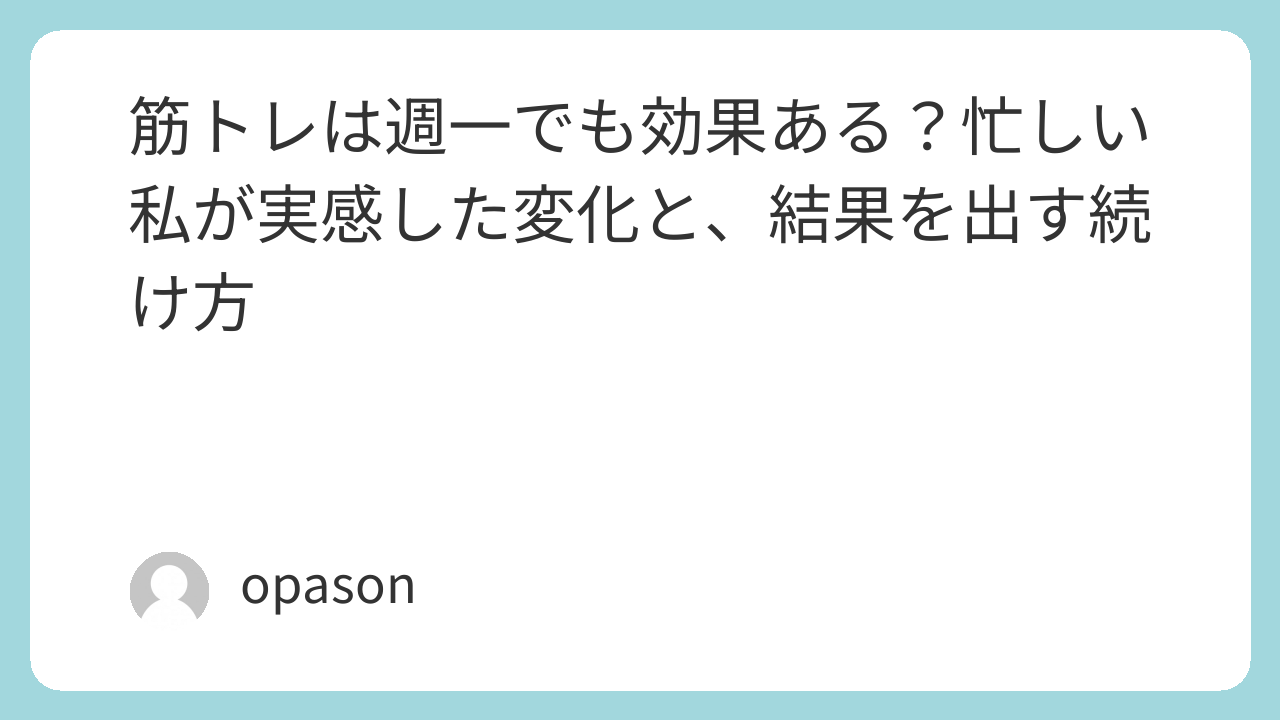 仕事が立て込むと平日は帰宅が遅くなりますし、休日も用事が入ることが珍しくありません。そんな生活のなかで毎週何度もジムに行くのは、正直かなりハードルが高い。だから最初は、「筋トレは週一でも効果あるのか」と何度も検索していました。