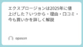 エクスプロージョンの値上げはいつだったのか。この問いに対しては、2024年9月ごろと2025年7月1日が大きな節目です。ただ、本当に大切なのは、その情報を知ったうえで「今の自分に合うか」を考えることだと感じます。