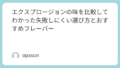 エクスプロージョンの味選びで失敗しにくいのは、「一番人気はどれか」だけで決めない人だと思いました。大事なのは、自分が何を苦手とするかを先に整理することです。