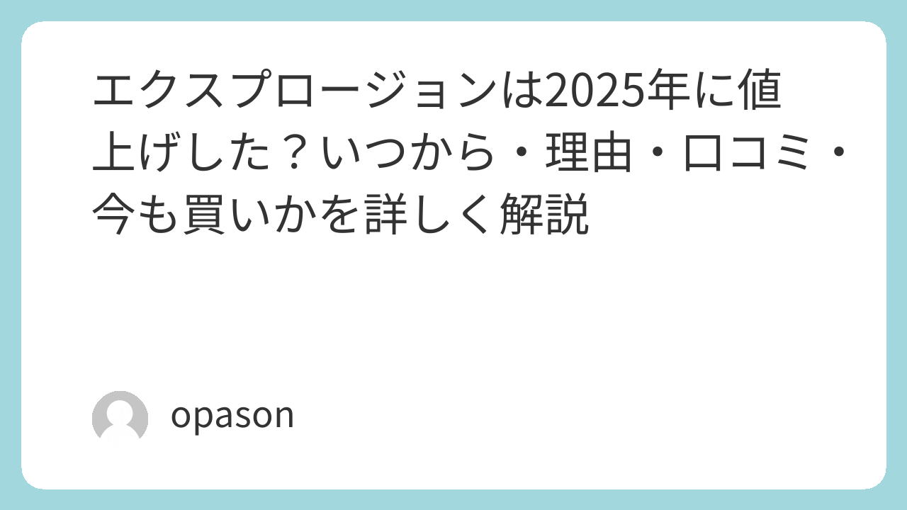 そう感じて「エクスプロージョン 値上げ 2025」と検索する人は、きっと私と同じで、ただ事実を知りたいだけではないはずです。知りたいのは、いつ上がったのか、どれくらい上がったのか、なぜ上がったのか、そして今も買う意味があるのか。この4つだと思います。