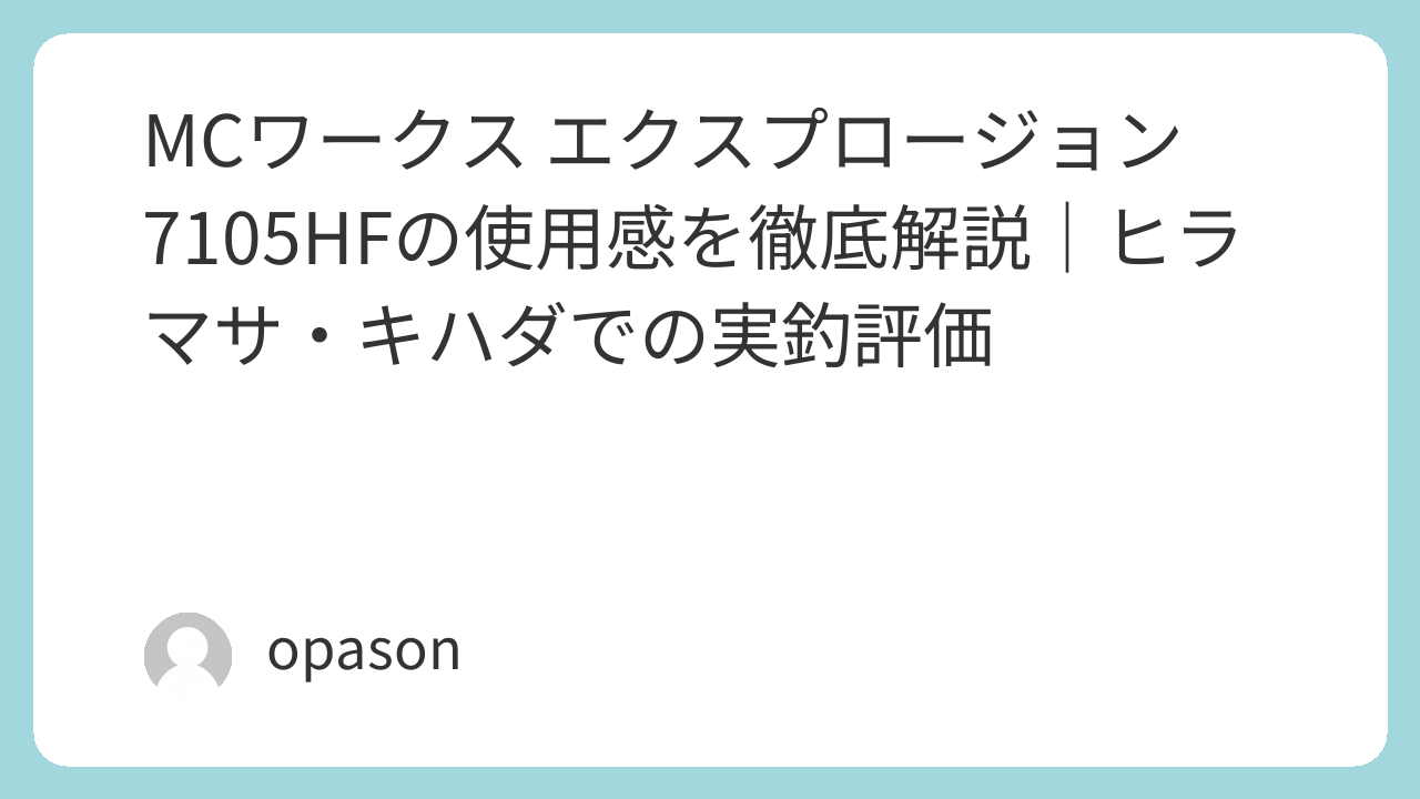 ヒラマサ狙いのキャスティングでは、1回の大チャンスのために何時間も投げ続けることが珍しくありません。だからこそ、ロッドの評価は最大値だけでなく平均点で決まります。MCワークス エクスプロージョン7105HFは、最強一辺倒のロッドというより、現場で使い倒せる高水準な実用品という表現がしっくりきます。