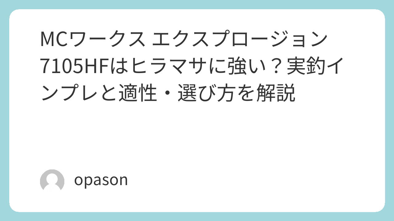 この記事では、MCワークス エクスプロージョン7105HFについて、実釣感覚を重視しながら、どんな人に向いているのかを掘り下げていきます。スペックを並べるだけでは見えにくい、現場目線の使いどころを中心にまとめました。