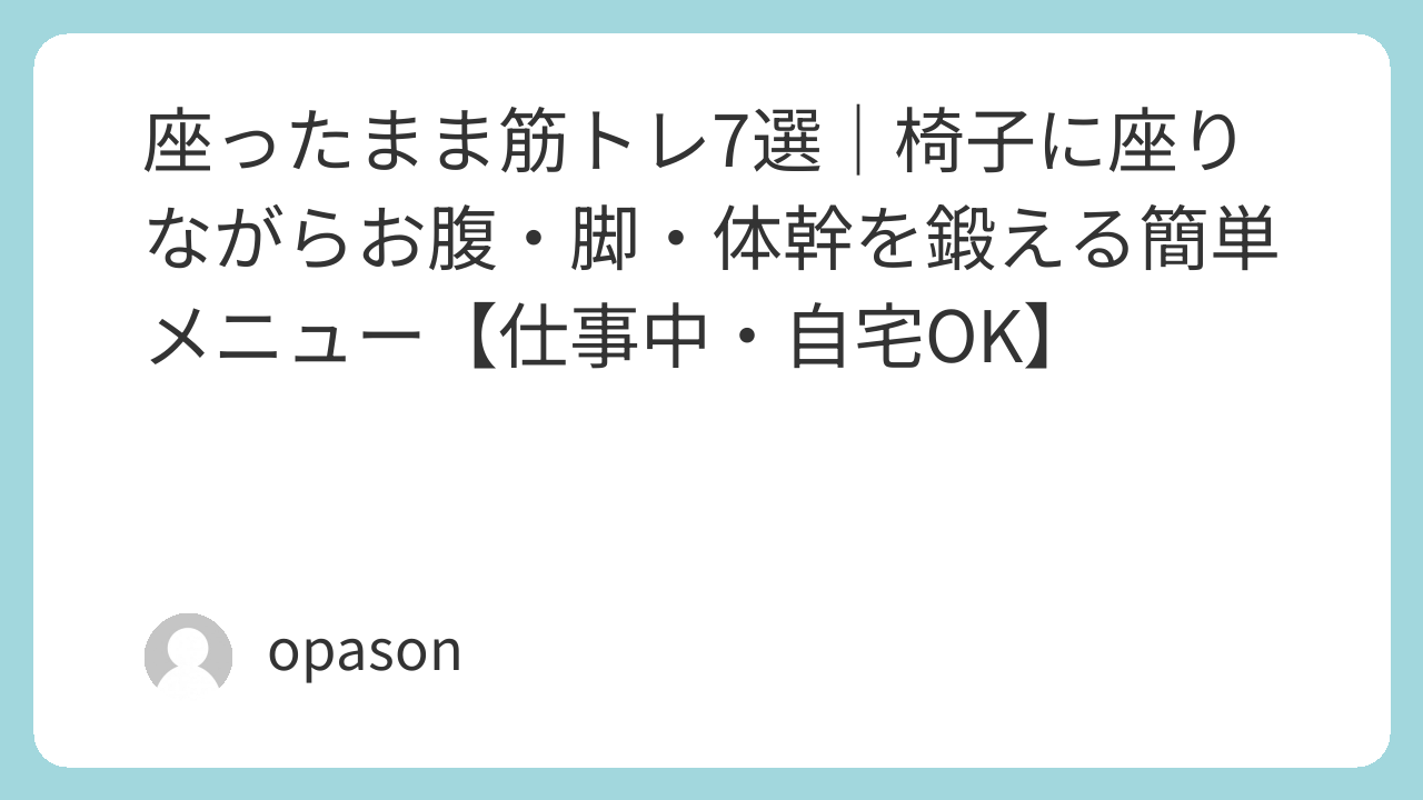 座ったまま筋トレは、派手ではありません。でも、だからこそ強い方法だと思います。仕事中でもできる。家でもできる。着替えなくていい。器具もいらない。気合いがいらない。この条件がそろっている運動は、実はそれほど多くありません。