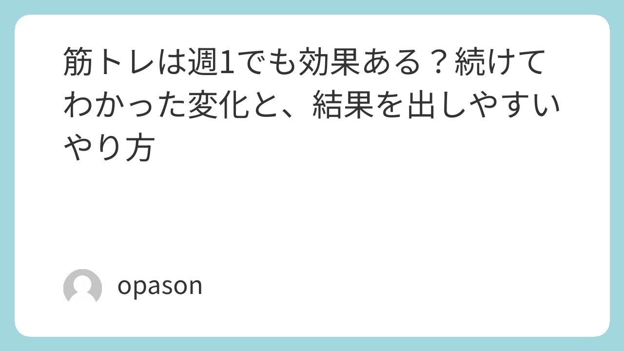 だから最初に結論を書いておきます。筋トレは週1でも効果があります。ですが、その効果は「短期で別人みたいになる」ではなく、「じわじわ生活と見た目が整っていく」に近いです。この期待値のズレさえなければ、週1筋トレはかなり現実的な選択肢だと思います。