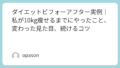 たとえば、年齢を重ねてから挑戦した人の話には、若い頃のようにはいかない体の変化や、健康面への不安がにじんでいます。逆に、見た目をきっかけに自信を取り戻した人の話からは、数字以上に生活の質が変わったことが伝わってきます。