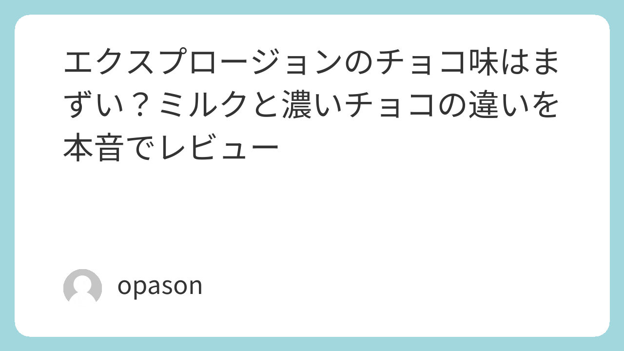 結論から書くと、エクスプロージョンのチョコ系フレーバーは「まずい」と切り捨てるタイプではありませんでした。むしろ、好みさえ合えばかなり満足度は高いです。ただし、誰にでも同じように刺さるわけではなく、ミルク感のある甘めのチョコが好きか、カカオ感のある少し濃い味が好きかで評価は分かれると感じました。