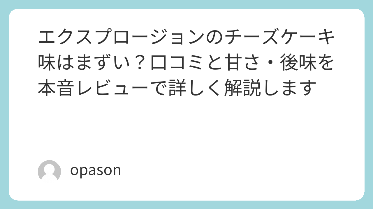 エクスプロージョン チーズケーキ味を検索すると、「まずいのでは?」「甘すぎない?」「水で飲める?」「本当にチーズケーキっぽいの?」といった不安が次々に出てきます。実際、私自身もこの味が気になったとき、成分表より先に知りたかったのは、毎日飲める味なのかどうかでした。