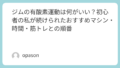 夏場は、汗を逃がしやすい軽いトップスのほうが圧倒的に快適でした。暑さで不快になると、それだけでジムに向かう気持ちが鈍ります。逆に冬は、行きは羽織れるものがあると助かります。ただし厚着しすぎると、運動を始めた途端に暑くなってしまうので、脱ぎやすい重ね着が便利でした。