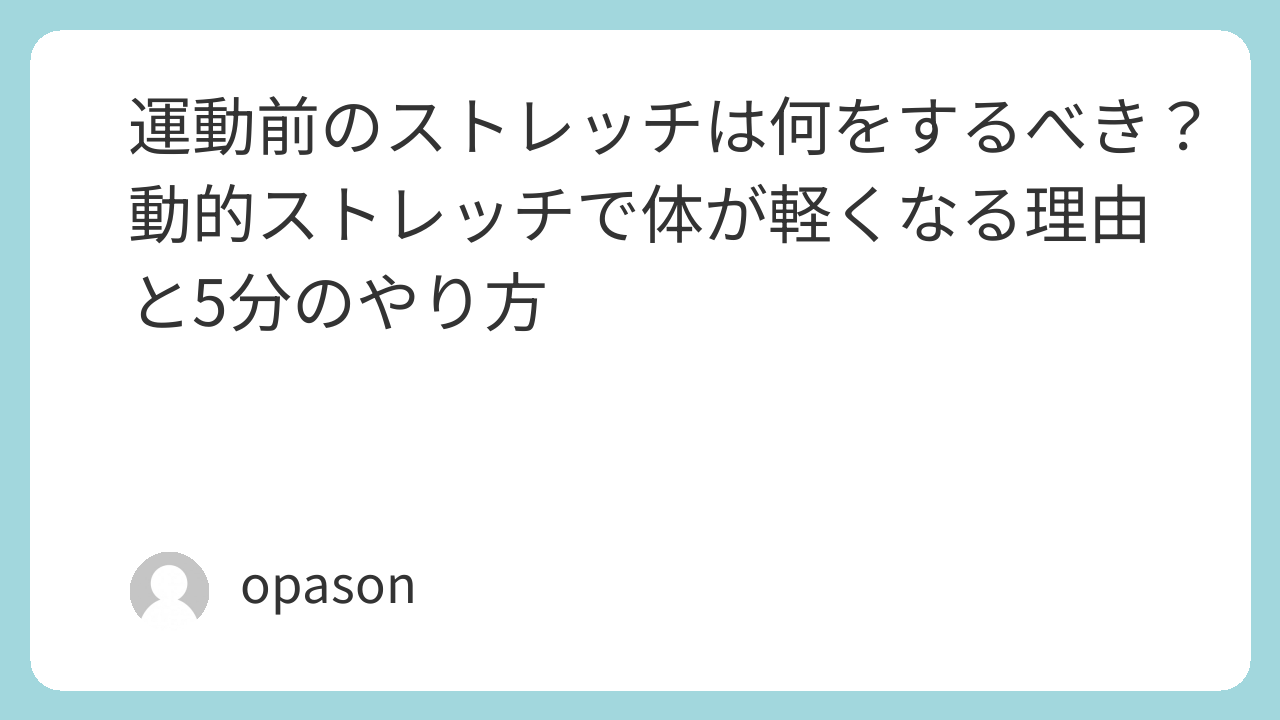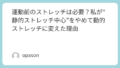 走り出しが重い、最初のセットがぎこちない、肩や股関節が固まっている。そんな感覚があるなら、運動前のストレッチを“静かに伸ばす時間”から“動きのスイッチを入れる時間”へ変えてみてください。たった5分でも、体の反応は思っている以上に変わります。
