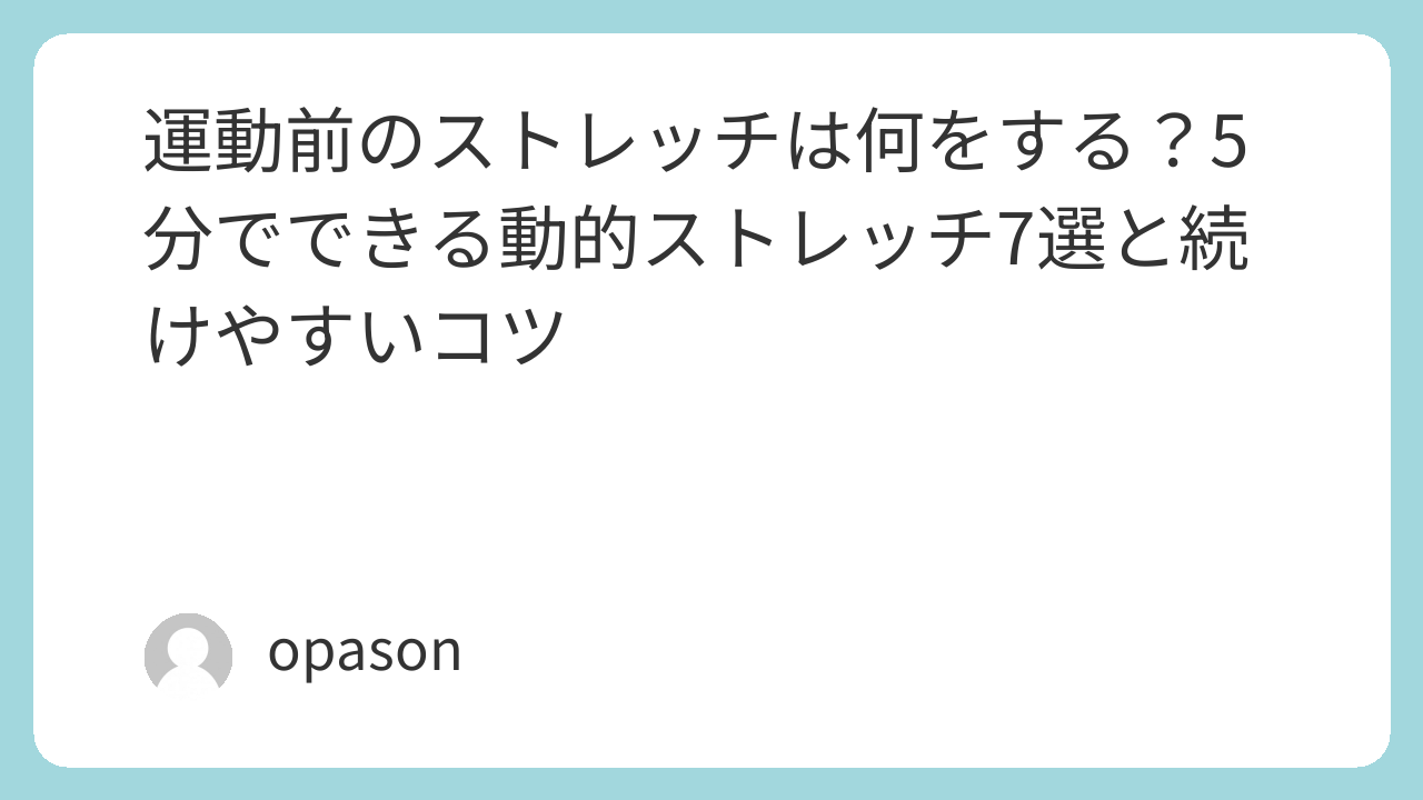 運動前のストレッチで迷ったら、止まって長く伸ばすことより、軽く温めて、少しずつ大きく動かすことを優先してみてください。動的ストレッチを中心に5分ほど体を起こしておくだけで、最初の重さやぎこちなさはかなり変わります。