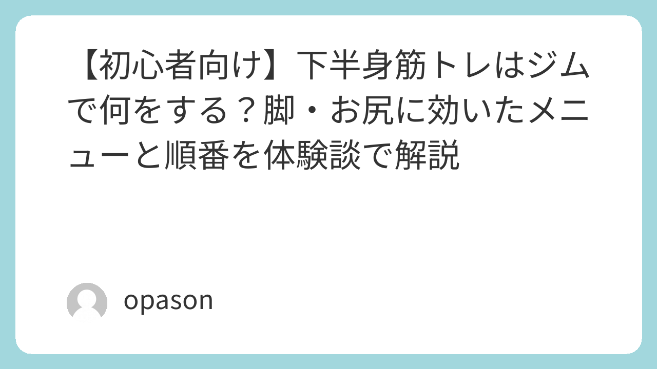 ジムで下半身筋トレを始めるなら、まずは難しいことを考えすぎず、マシン中心で始めるのがおすすめです。