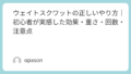 ウエイトスクワットは、太もも・お尻・体幹をまとめて鍛えたい人に向いている種目だと思います。