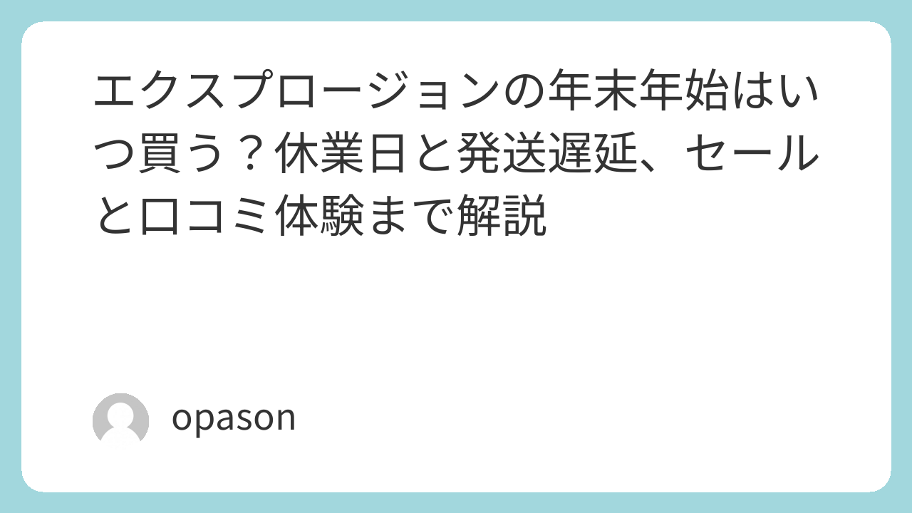 この記事では、エクスプロージョンの年末年始の注文や発送、休業期間の傾向、セールの有無、実際に買って感じたことを中心にまとめます。これから年末に向けて買うか迷っている人は、注文前の参考にしてください。
