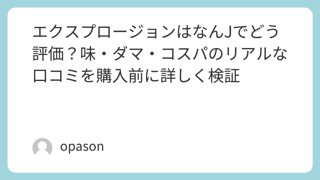 エクスプロージョンはなんJでどう評価?味・ダマ・コスパのリアルな口コミを購入前に詳しく検証