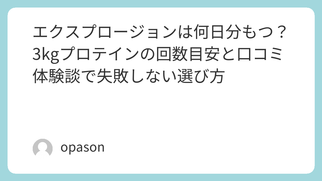 エクスプロージョンの3kgを何日分と考えるかは、1回あたり何g使うかで変わります。