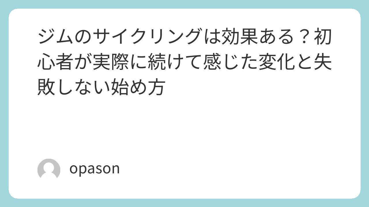 ジムで何をすればいいかわからない人、走るのが苦手な人、無理なく汗をかきたい人は、まずサイクリングから始めてみてください。思っているより気軽で、思っているよりしっかり運動になります。