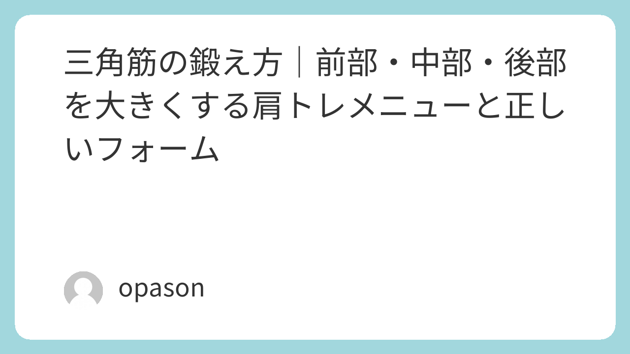 ショルダープレスで土台を作り、サイドレイズで肩幅を出し、リアレイズで後ろ側まで仕上げる。この流れを、無理のない重量と丁寧なフォームで続けることが、結局はいちばん確実でした。三角筋は派手な高重量より、狙った部位にきちんと効かせる意識で伸びやすい筋肉です。肩を大きくしたい、見た目を変えたいと考えているなら、まずは中部と後部を意識した三角筋トレから始めてみてください。