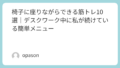 この記事では、私が実際に続けやすかった椅子に座りながらできる筋トレを、体験ベースで紹介します。デスクワーク中、自宅でテレビを見ながら、運動が苦手な人でも始めやすいメニューを中心にまとめました。
