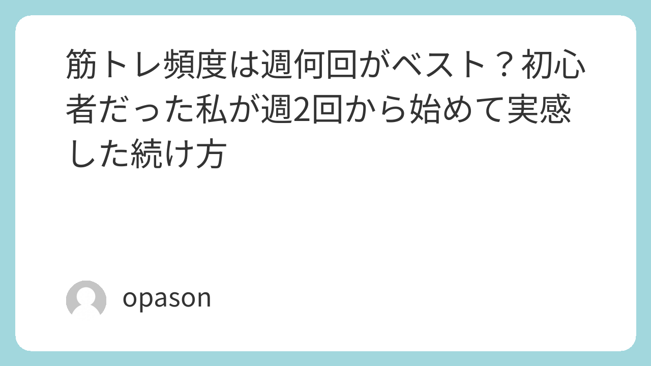 前回は何kgで何回できたのか。どの種目がきつかったのか。筋肉痛はどれくらい残ったのか。これを簡単に残すだけで、自分に合う頻度が見えやすくなりました。