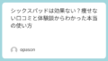 つまり、シックスパッドの効果を感じるかどうかは、期待している効果によって大きく変わります。短期間で体重を落としたい人には物足りないかもしれません。一方で、筋肉への刺激やトレーニング補助を求めている人なら、試す価値はあると思います。