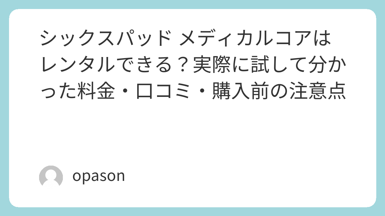 結論から言うと、シックスパッド メディカルコアは購入前にレンタルで試す価値があります。特に、サイズ感・刺激の感じ方・毎日続けられるかどうかは、スペック表だけでは判断できません。