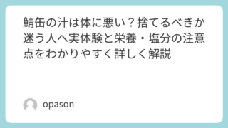 未分類 鯖缶の汁は体に悪い?捨てるべきか迷う人へ実体験と栄養・塩分の注意点をわかりやすく詳しく解説