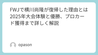 未分類 FWJで横川尚隆が復帰した理由とは 2025年大会体験と優勝、プロカード獲得まで詳しく解説