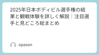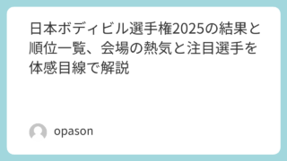 日本ボディビル選手権2025は、数字だけでは語れない大会だった日本ボディビル選手権2025を振り返ると、最初に思い出すのは順位表そのものより、会場に満ちていた独特の緊張感です。国内最高峰の舞台らしく、開演前から客席には張りつめた空気が流れ、...