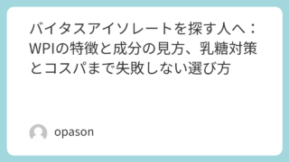 「バイタス アイソレート」で検索する人の目的この検索は多くの場合、「VITAS(バイタス)で“アイソレート(WPI)”のプロテインがあるのか」「WPIはWPCと何が違い、どれを選べばいいのか」「成分表の見方や飲み方までまとめて知りたい」とい...