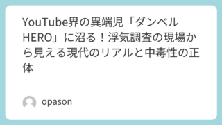 未分類 YouTube界の異端児「ダンベルHERO」に沼る!浮気調査の現場から見える現代のリアルと中毒性の正体