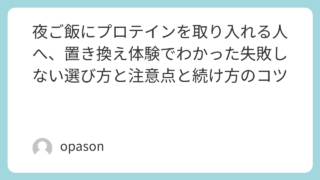 夜ご飯にプロテインを足すか、思い切って置き換えるか。結論から言うと、続いたのは「夜ご飯を全部プロテインにしない」やり方でした。私が最初にやらかしたのは、夕食をいきなりシェイク1杯にしてしまったこと。確かにカロリーは抑えやすいのに、3日目あた...